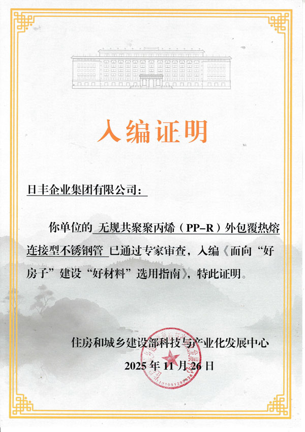 日丰企业集团始终坚守立业初心,发挥龙头引领作用,多维推动行业变革升级。在产品方面,前瞻洞察市场需求,在上世纪九十年代,率先引进欧洲先进技术与设备,开拓兼具塑料与金属双重优势的铝塑复合管领域,彻底改变国内长期使用镀锌水管的局面。至2008年,日丰企业集团成为全球最大的铝塑管生产商。在此时期,公司再度领先行业趋势,推出新型管道PP-R管,开创了塑料管道的新时代。目前,日丰企业集团已设立八大现代化生产基地,全面覆盖华南、华北、华中、西北、东北等市场,总占地面积超3000亩,拥有超380条生产线,以卓越的智能制造与交付能力,筑牢品质与供应链的坚实根基;在研发方面,持续投入数十亿元,拥有CNAS国家级认证实验室、国家级企业技术中心及广东省工程技术研究开发中心等多个省部级科研平台,累计荣获1000余项国内外专利,通过140余项国际认证(含美国NSF、欧盟CE、德国DVGW、西班牙AENOR、荷兰KIWA五大国际权威认证),主导及参与110余项国家及行业标准制定,以技术创新助推行业高质量发展。在服务方面,秉承“客户第一”准则,行业首批推出免费试水试压服务,升级“日丰安全卫士”产品+服务新模式,提供五十年双质保服务承诺,为行业打造服务标杆。2025年,日丰企业集团获第三方权威机构沙利文认证,上年度家装管道销量、销额、服务家庭数与营销网点数量四项均居行业第一,成为家装管道领域“行业冠军”。