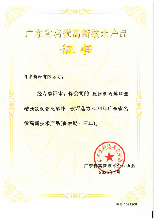 广东省名优高新技术产品-改性聚丙烯双壁增强波纹管及配件