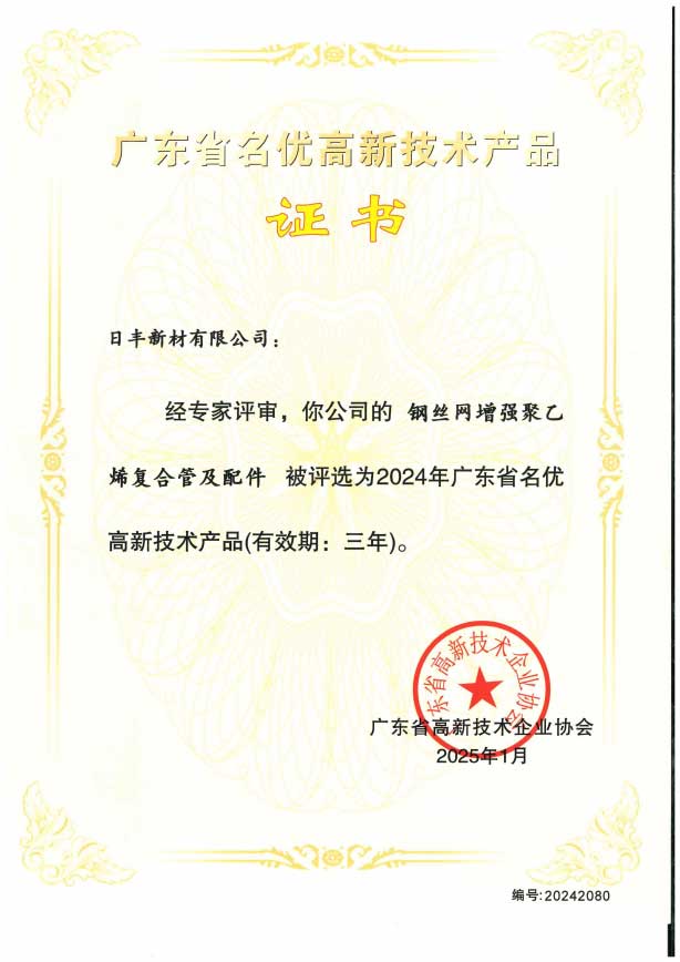 广东省名优高新技术产品-钢丝网增强聚乙烯复合管及配件