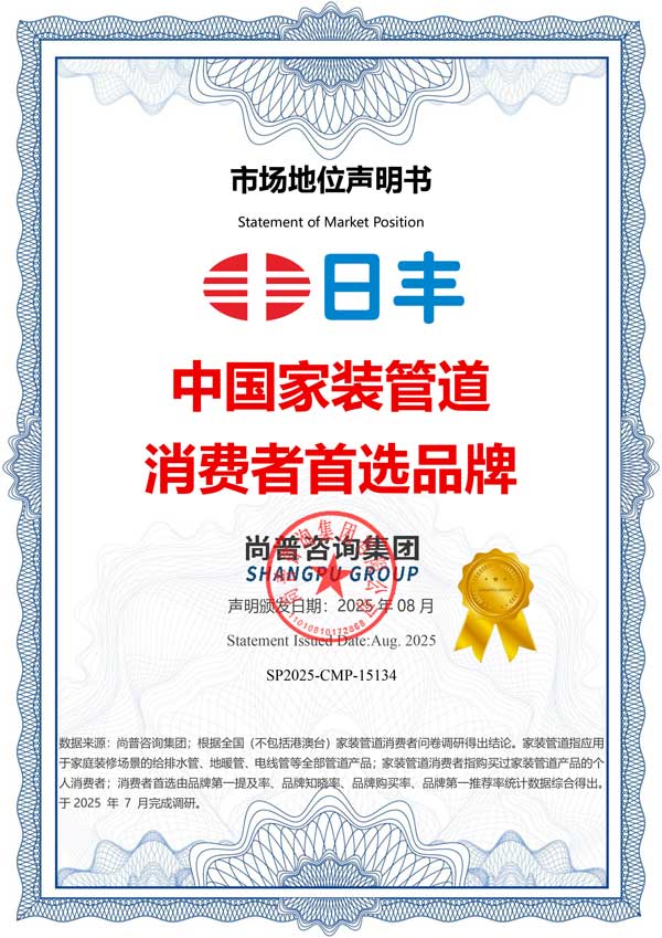经过十多年的发展,日丰已发展成为国内管道行业的领先品牌。为了更好地满足市场和用户需求,2007年,日丰又推出PP-R管。凭借突出的研发优势、卓越的产品品质与强大的品牌影响力,日丰在PP-R行业迅速崛起。