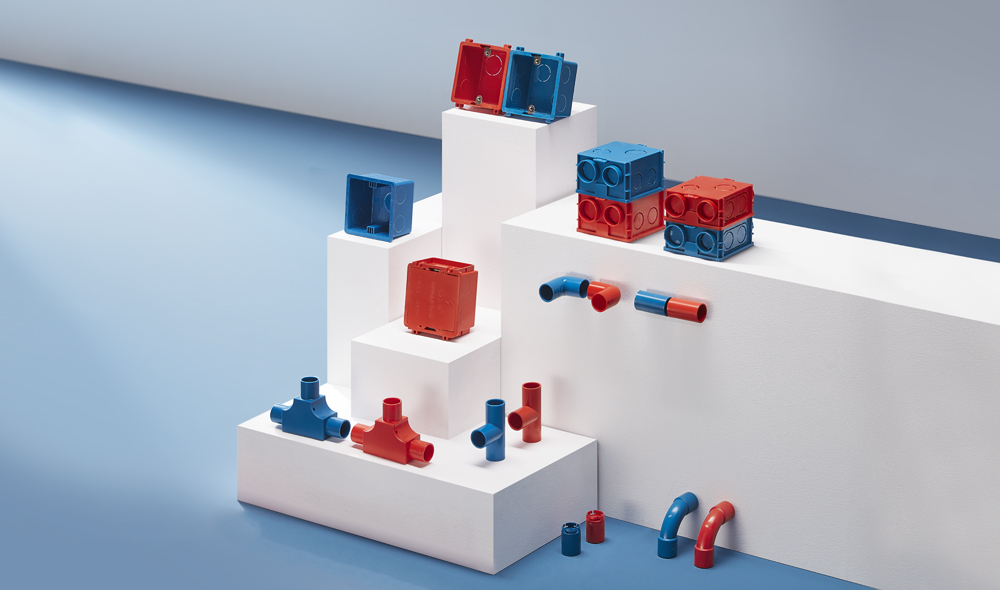 “强电用红管,弱电用蓝管”的解决方案,鲜明的将强弱电分离隔离,采取人性化识别方式,让用电安全可视化