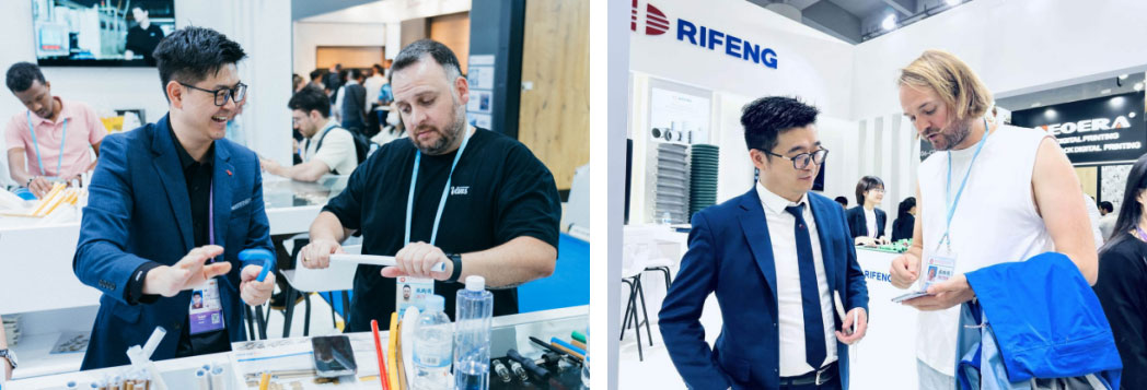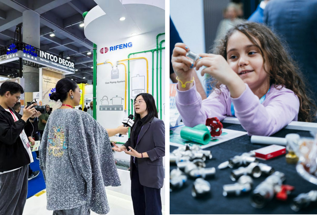 日丰展位迎来重磅关注——佛山市副市长等领导一行莅临视察,围绕大流量管件技术创新与国际认证布局展开深度交流,成为展区当日焦点事件。展会第四日,央视频记者也来到日丰展位展开专访,镜头聚焦日丰管道核心场景:紧扣展会“创新+绿色”双驱动理念,依托实验室可检测项目一千余项支撑,及KIWA、DVGW、NSF等50多张海外证书加持,日丰此次不仅收获意向订单,更凭借精准的市场适配性,成为全球采购商咨询清单上的“优先选项”,咨询量较往届有所提升。