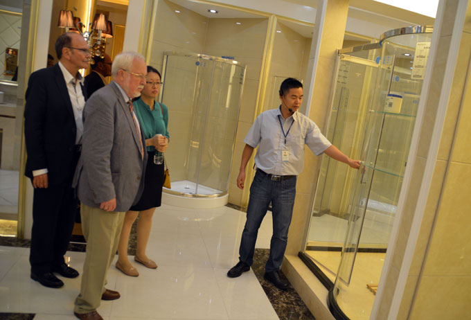 德国考察团一行在三水区常委、常务副区长钟飞健等领导的陪同下,实地参观日丰公司三水工业园,日丰公司李白千副总经理、陈喜红副总经理也亲自带队陪同考察。